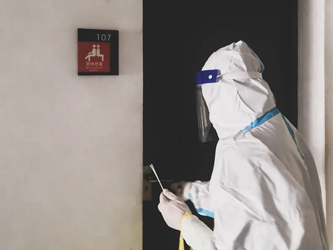 对住宿员工设置封闭式管理,并设置单人单间的隔离点,公司在公共区域设置专门废弃口罩收集垃圾