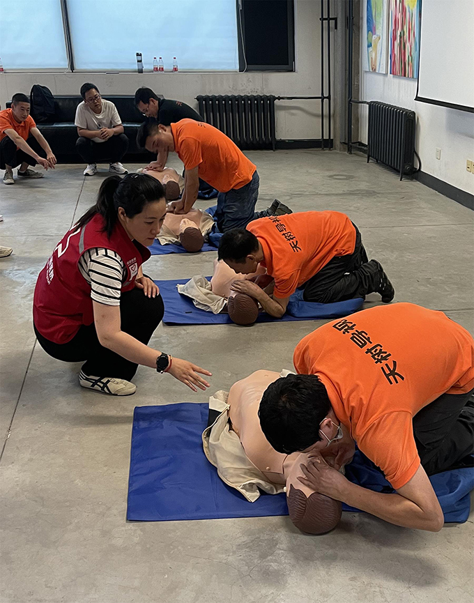 天树导视在公司开展心肺复苏和自动体外心脏除频仪(AED)技能培训,由北京市红十字会委托的北京京顺医院进行上门示范指导,培训方式为理论和实搞相结合。