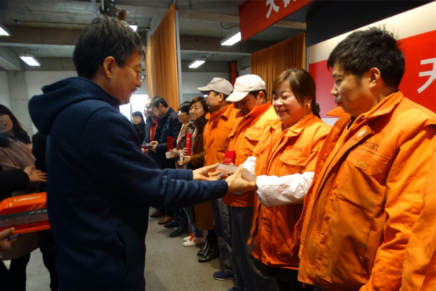 天树公司总经理洪兴宇上台讲话,对全体员工进行了鼓励,并宣读了荣获优秀员工的名单。