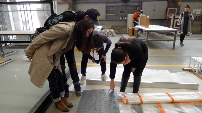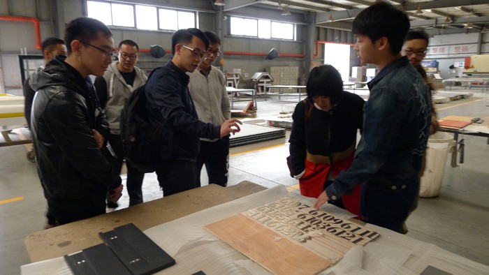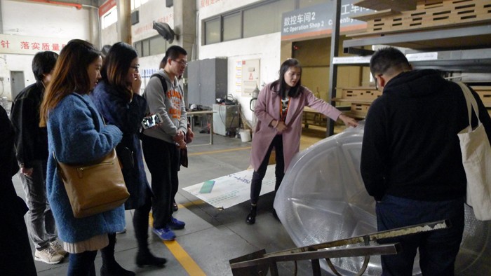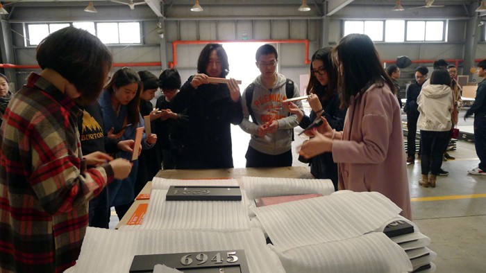 在我司几位资深设计师的带领下,同学们分组进行了参观活动,先后来到各生产部门和车间,对各种工艺制作技术进行了简单的了解,并对各种产品从设计到出货的全部流程有了进一步的熟悉。随后来到样品展示厅,同学们更加直观的接触到各种工艺制造出的各种不同的产品,体验到各种产品所展示出的不同效果。