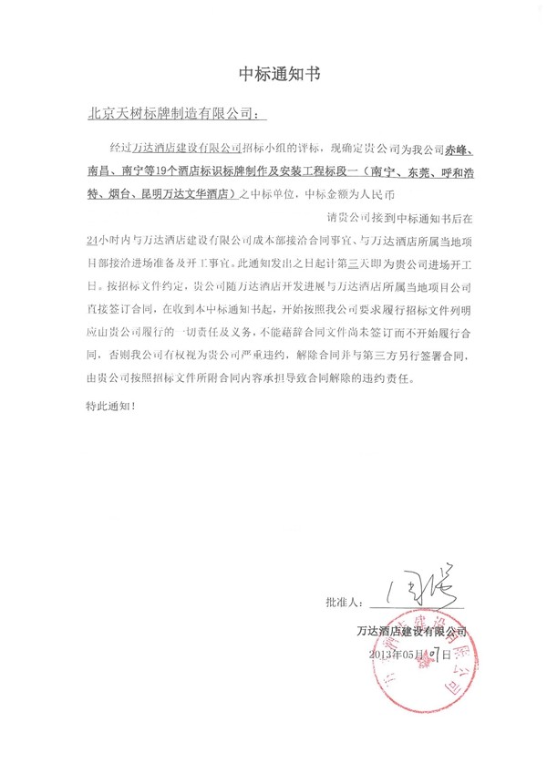 2013年5月至今,天树凭借优质的产品和专业的服务,成功中标(烟台文华酒店、东莞文华酒店、昆明文华酒店、南宁文华酒店、呼和浩特文华酒店)共五家年度集采项目。