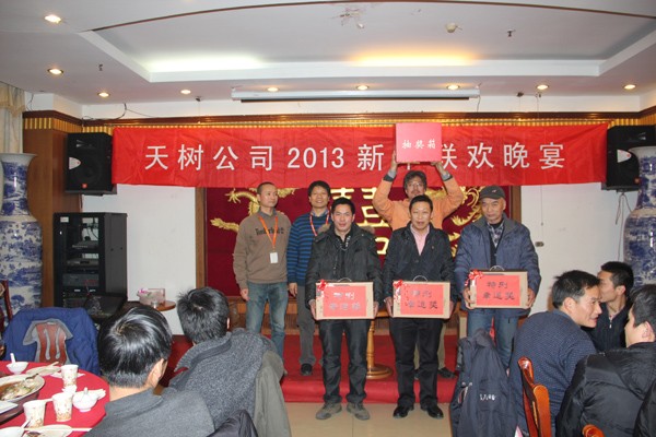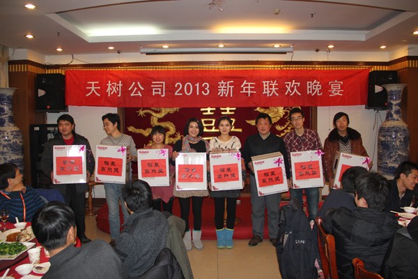 2013年1月11日,天树公司举办了历年一届的新年联欢会,联欢会分为新年晚会,新年聚答两部分,中间穿插互动游戏和幸运抽奖环节,联欢会在轻松偷快的气氛中圆满落幕。