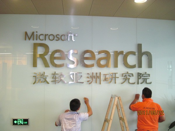 在微软亚太研发集团新楼启用即将一周年之前,微软室外LOGO顺利完工,它将成为工业发展的新符号。