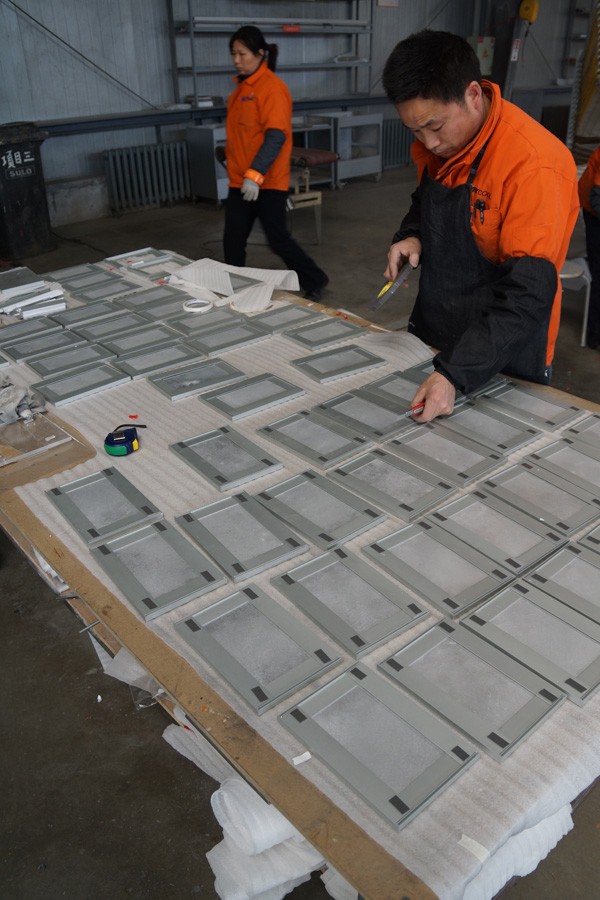 由于项目前期的良好沟通,生产工作得以全面开展,根据央视新楼的交验和入住进度,我们将工作进度重新调整。主要工作分为现场丝印和车间加工、现场安装两大部分,特别是对于现场施工人员,我们选择组织觉悟高、技术强、有责任心的员工,并坚持现场安全,技术交底例会,确保国家重点项目的顺利实施。