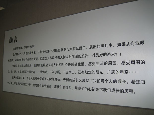 公司于春节后举办了天树第一届得影展。员工踊跃参加,积极投稿,把自己的工作,生活中的细节用镜头展现给了我们,从投递的作品中我们看到了,天树人不仅是严谨的工作者,而且是感性的生活者,在工作中我们找到了理想,在生活中我们放飞了希望,这就是每个天树人的风采!